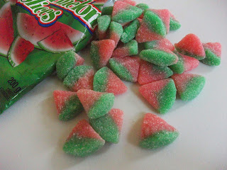 The main difference between these and the Haribo Watermelon Slices is that they're brighter and more artificial in colour: