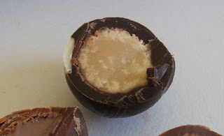 "A star of oozingly soft caramel paired with our 70% dark chocolate" - When I cut into this it unfortunately imploded, so apologies for the messy-looking pic. Perhaps that's what happens when it goes supernova?! It tasted delicious; the caramel centre was very gooey with a lovely buttery flavour that contrasted perfectly with the rich dark chocolate. 9 out of 10.