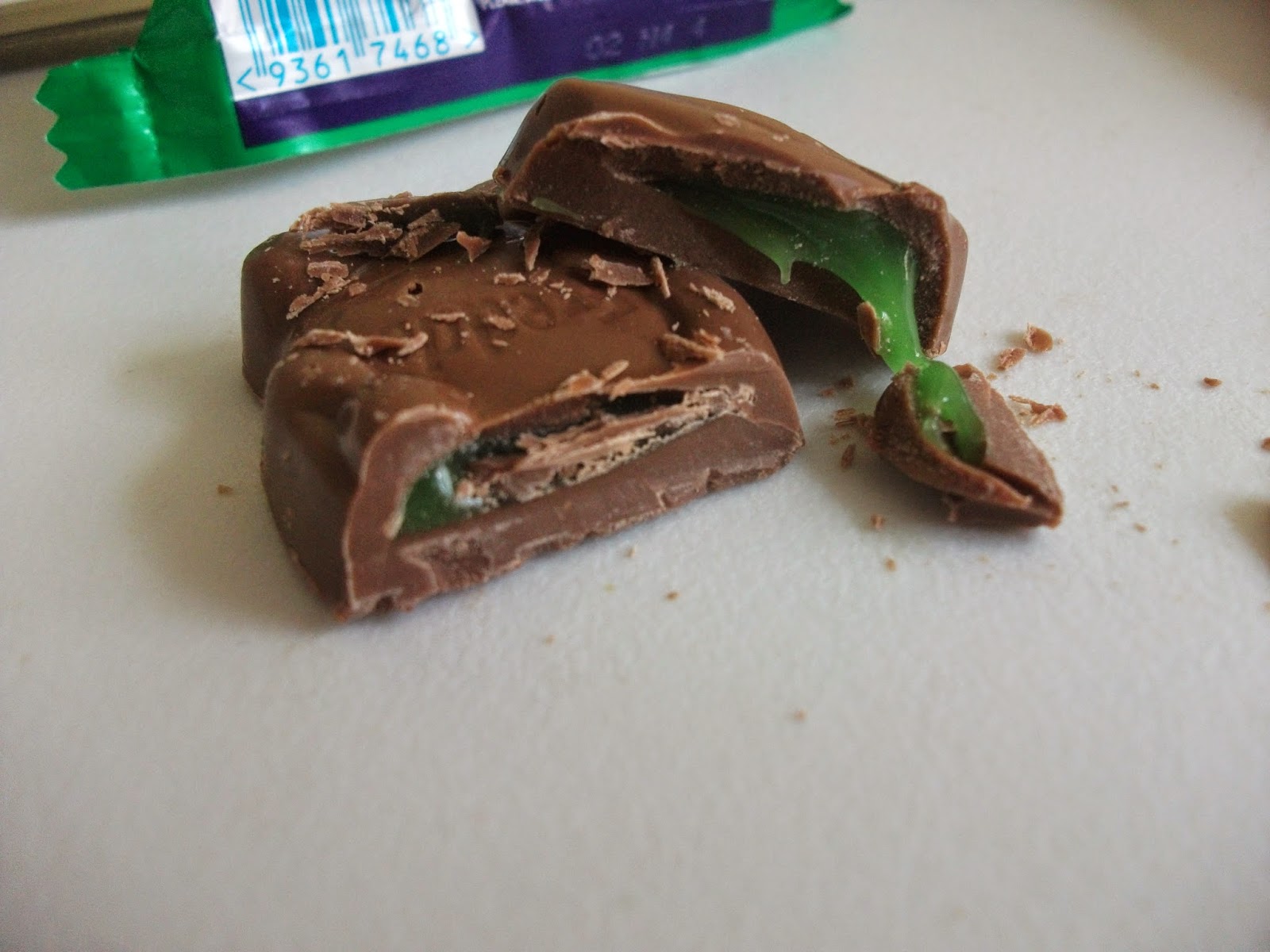 The peppermint filling oozed out and was very green indeed, with a strong minty aroma. Taste-wise it was pleasantly minty and of course very sweet. Combined with the milk chocolate it went really well, although I have to say the chocolate has a slightly different taste to UK Dairy Milk. It's not bad, just...different. Overall I enjoyed the combination and thought this made for a lovely change from a regular Freddo.